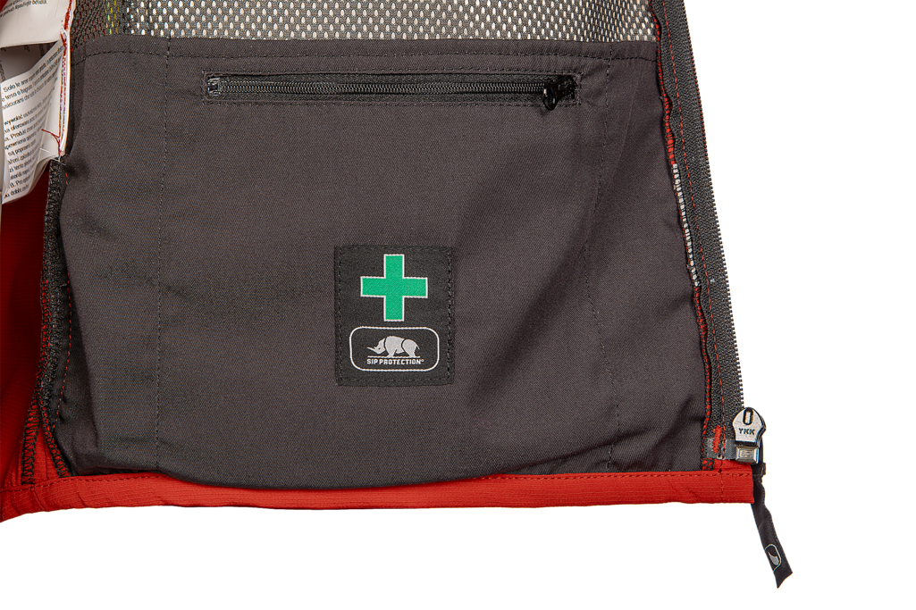 - 1 patched First Aid pocket with zip closure on the left side