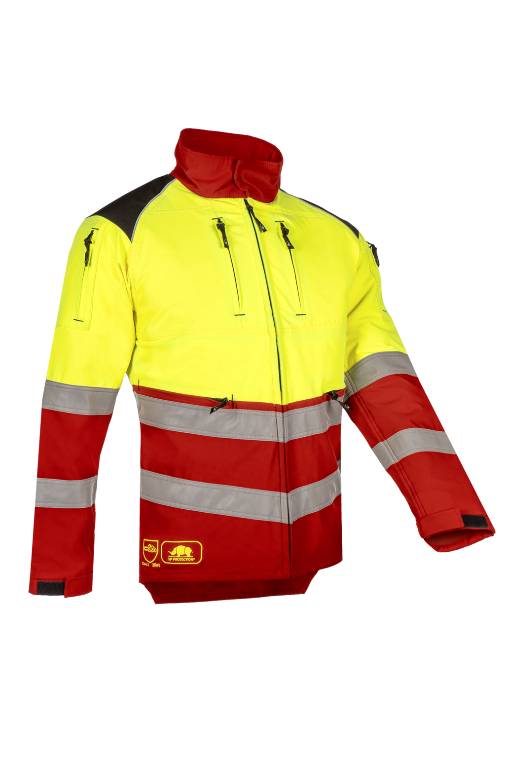 HV chainsaw jacket, EN 11393 class 1 type B + belly protection, EN ISO 20471 class 2